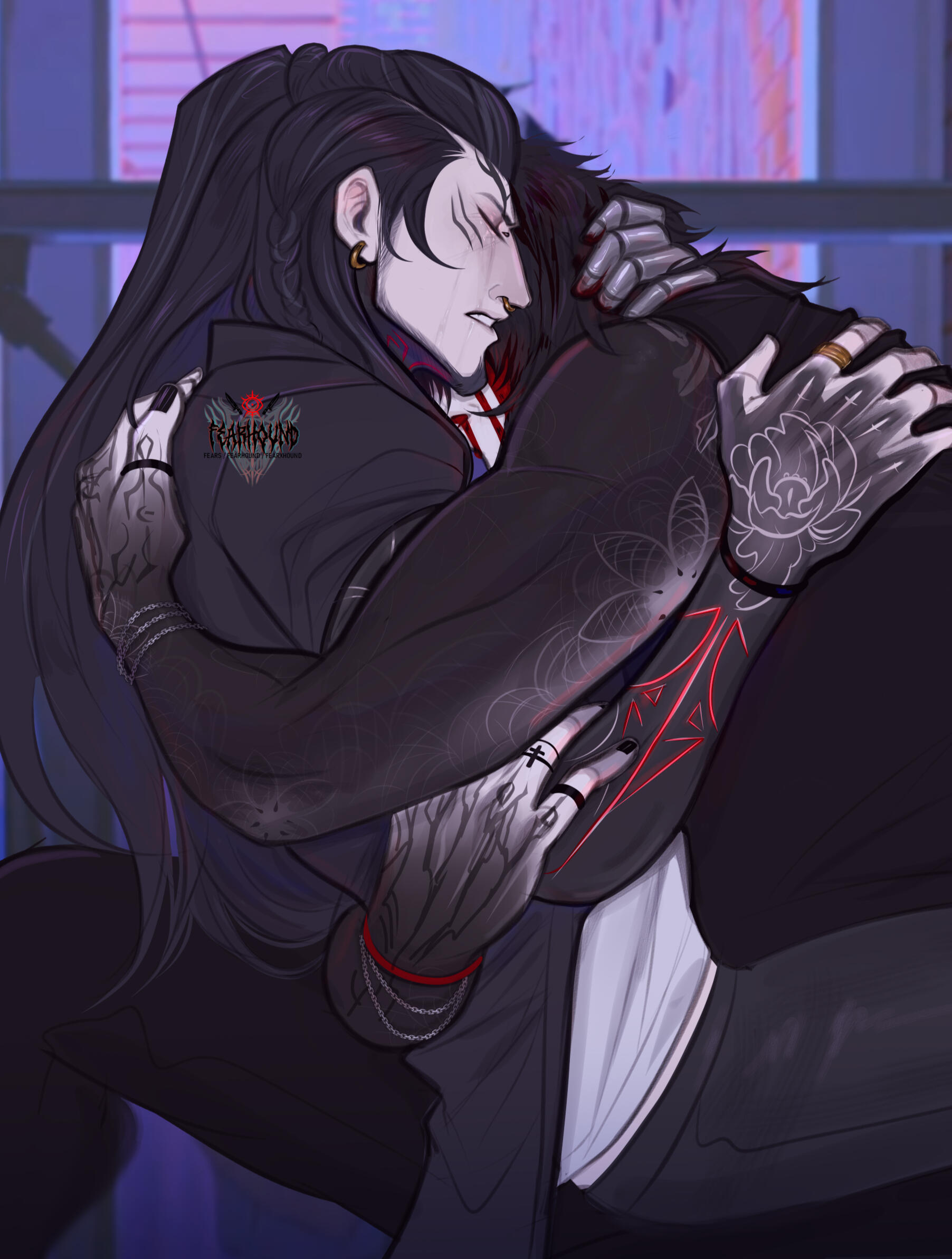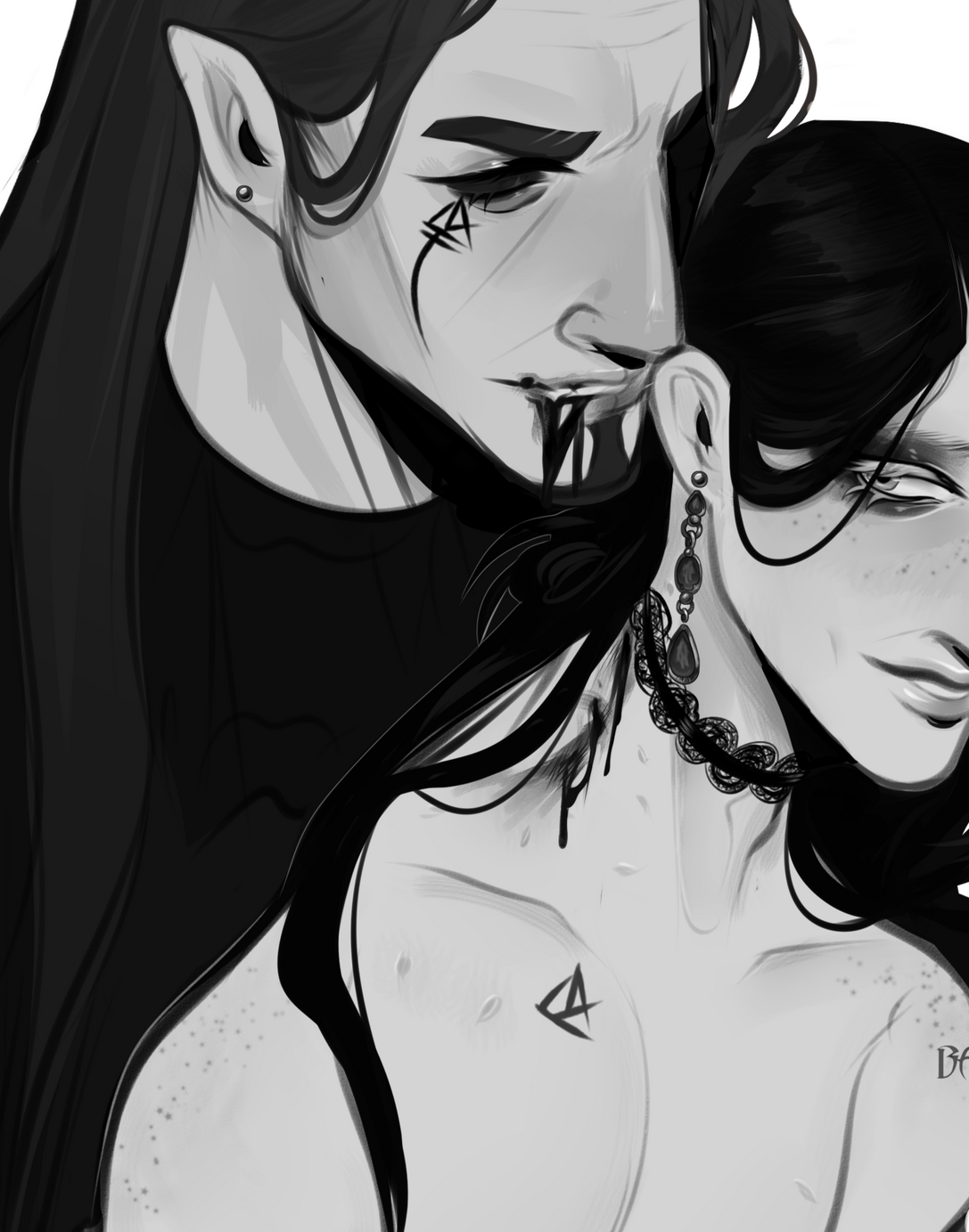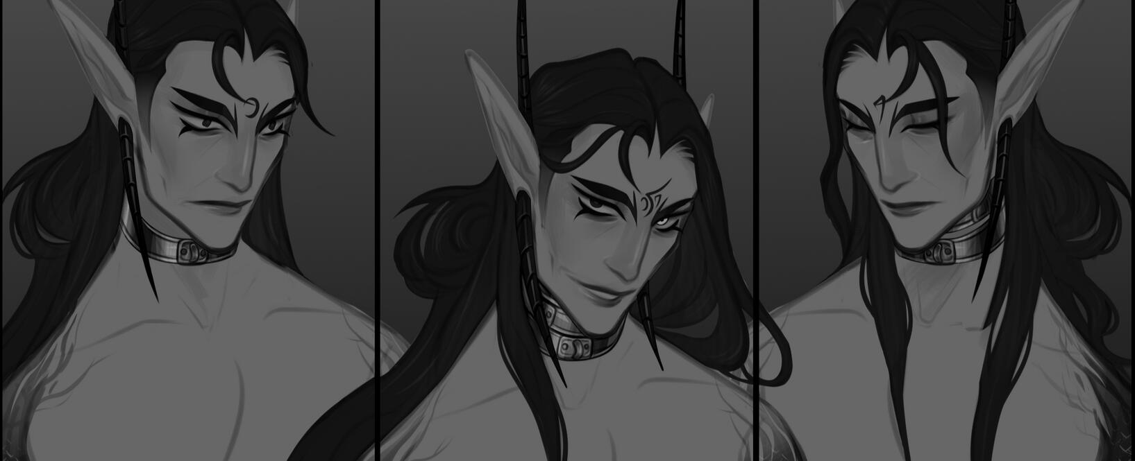 Each Roro's is completely different in appearance aside from their humanoid forms, cultural tattoos and soul-shards.Soul-shards are the life-soul of the Roro's, the bright shards, indents, slits or protrusions colored with the palette of their soul. These soul-shards are precious and reactive, some being able to soul-bind (a process of creating a soul-mate with whom a bond never severs) with certain races, causing their soul-shards to match colors with their bind, but each subspecies has a different amount of soul-shards visible, (Ariun having more than Usuri for example.)Soul-shards are easily corrupted, and thus is the reason why the Roro's are the soul-protectors of Deyas, for any other species not born of Deyas soil creates a higher chance of potential corruption of the fragile Mother Shard.Roros that live off world have more of a cyberpunky / modern look, whereas Deyas dwellers are more rustic and natural - but both tend to have at least one tattoo.