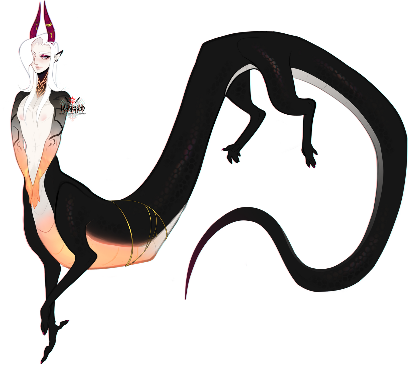 The Ariun are a subspecies of draconic-like Roros.They have horns atop their heads, elven ears, thick tails lined with soulshards, clawed, digigrade paws, and an abundance of soulshard slits on their skinThe Ariun have wings tucked neatly into a soulshard slit upon their backs, with the ability to fly, their job on Deyas is to nourish the land with clean, pure water they harvest from the clouds.Ariun are seen, in other continents such as Enai, as deity's. Their draconic appearance often mistaken for one of the old gods from Valitor, or they're simply worshipped for their uniqueness alone. It is rare, but not impossible to find an Ariun anywhere but on Enai and Deyas, Enai being a popular living location for the dragon-like beings due to the high prestige of their species, being showered with gifts, gold and servants. These Ariun are named 'cosette', and live entirely different lives to those of the worker Ariun, who fall more in line with the Usuri's work-heavy nature.The Ariun are dually blessed and cursed by the abundance of soulshards that line their dragon-like forms, causing them to be more prone to corruption, but their power and ability to soul-bind greatly increases