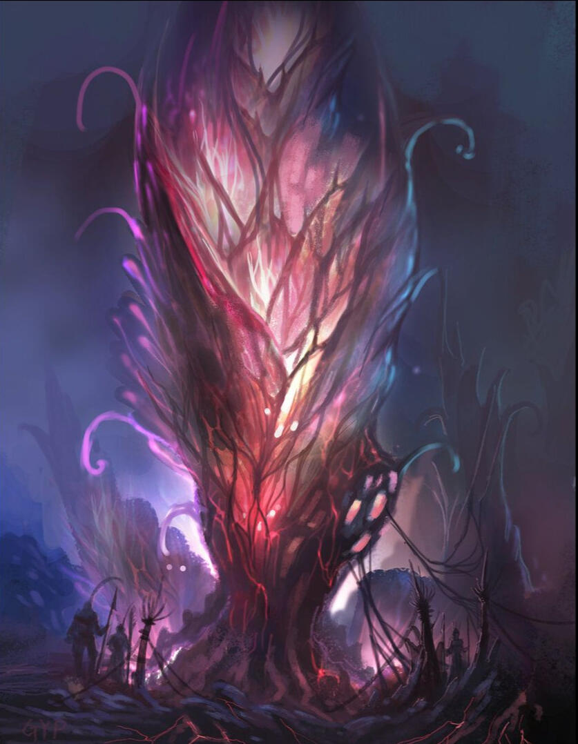 A species of parasitic aliens with the goal to use worlds as reproductive spawns and host bodies.Their primary goal is control - but they have their eyes fixed on the Bionics as ideal hosts.They bind the living and the dead, no matter the species - their goal is control. If binding cannot work, infestation will. Their tentacle-like forms can invade organic bodies, corrupting them directly to forever join that body to the consonance. This is called "converting" among organics and differs greatly from "binding" an organic form.They have almost a muted version of a hivemind, communicating silently, without sharing individual experiences. Just one look and another Ophen will know what is left unsaid.