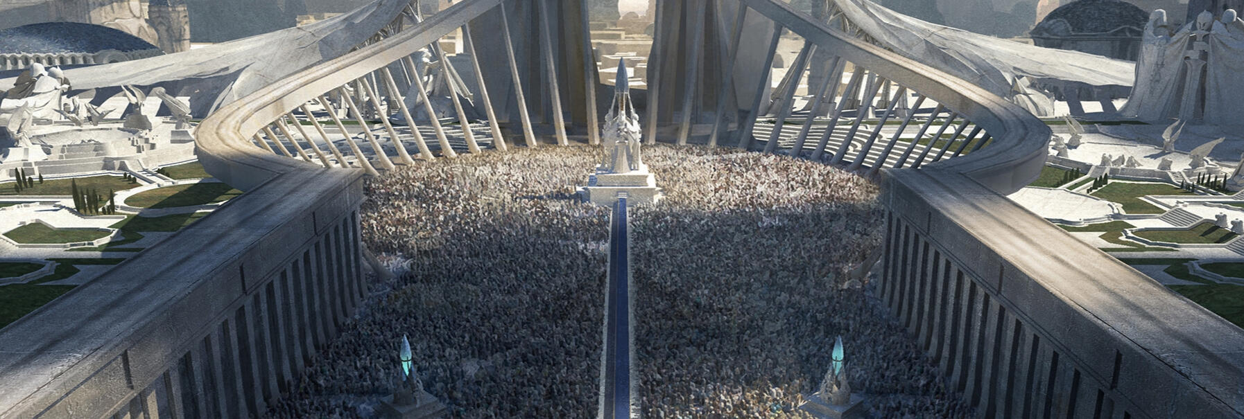 "Visage" or "Δ∴" (due to it's nature, these two symbols are the closest organic symbols available to write it's name, but is sadly a poor rendition.) is a masked space station that is called home for all Bionics, High above all of the worlds atmospheres, completely unreachable by any being with lungs or flesh, even reinforced Gaian metals cannot withstand the atmosphere that the Bionics so easily walk.The Visage floats gracefully in-between the stars, an intricate cylinder design made of indestructible, undiscovered material, hosting entire inorganic ecosystem and galaxies in a cylindrical shaped station, it rotates so as to provide artificial gravity via centrifugal force on their inner surfaces.The station rotates in opposite directions in order to cancel out any gyroscopic effects, allowing for entire ecosystems, life and gravity to exist directly above other systems inside of the same cylinder.Deeper inside, bionics live under the fear of the Diadem, their creators.though all rule is delivered by the diamond table in their place. The Visage lives as any Bionic, shifting and reshaping to the Bionics needs.