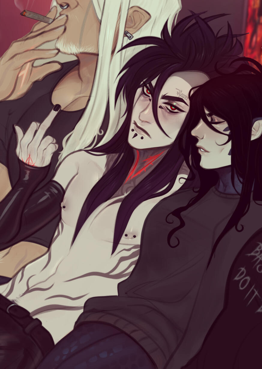 Ophen reproduce using many variants - The Bearers, The Infixers, Ophenbound, Ophen Converted and Ophenlich.BEARERS: The bearers are a naturally born Ophen tasked with bearing eggs for birth. Any gender can be a bearer, and thanks to the unique makeup of the Ophen, any Ophen can change genders at any time if needed, including reproductive functions.INFIXERS: The Infixers are a naturally born Ophen that accept the role of breeder. Though a lot of Ophen are seen with both sets of genitalia, the Infixers abandon their second set to make room for the anatomy needed to lay eggs.OPHENBOUND: An Ophenbound is a unique and rare occurrence that happens when an organic fuses with Ophen corruption instead of being destroyed by it, and in turn, directly taking power from the Ophen that spread the corruption that bound them, This can lead to a very strong, or very weak Ophenbound, but all Ophen power, no matter how weak, can redefine power within organics levels. Ophen binding is almost unheard of, and only a few bear the marks of the coalescence, but those who come out of it alive have an untapped source of power unbeknownst to man, but this power comes at a price - one's humanity cannot possibly co-exist with the will of the Ophen, and it will be torn from them, leaving the host with their mind, but replacing their soul with the dark corruption that they wield.OPHEN CONVERSION: Ophen Conversion is even rarer still, being the ultra-rare occurrence of an organic and an Ophen fusing together, both physically and mentally. It is worthy of death within Ophen society and only an Ophen that rebels would ever attempt it, rebelling in itself being difficult due to the inherent connection and social values of all Ophen. For an Ophen to fuse with the body of an organic, the Ophen must be on the verge of death. Only 2 organics have ever been converted this way.